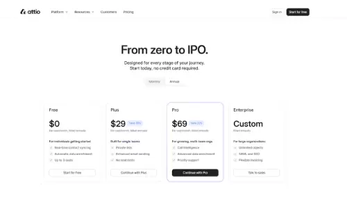 Important note: Attio recently increased workflow credits per plan (Free → 250, Plus → 1,500, Pro - 10,000) - if you plan heavy automation, check the current credit table and extra-purchase options before you commit.