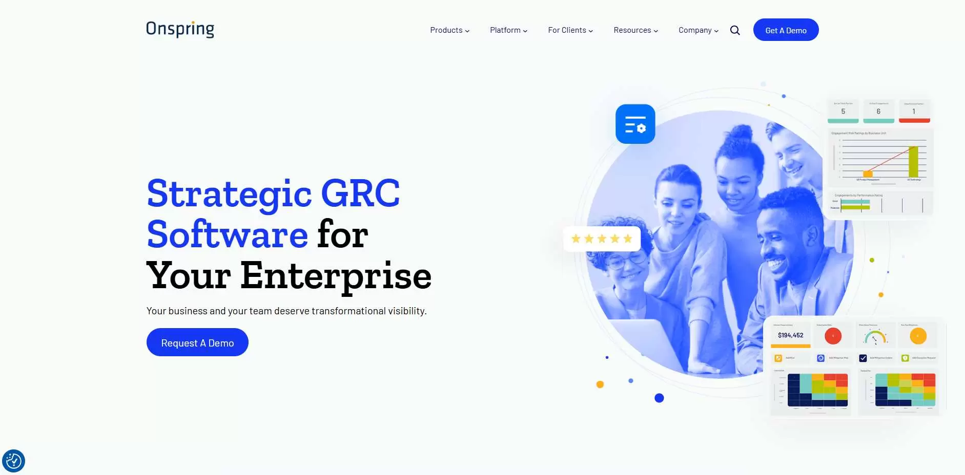 Onspring is a cloud-based GRC solution that you can customize to fit your requirements. It focuses on making life simpler by automating essential governance, risk, and compliance work. It focuses on centralized visibility, connected products across risk and compliance areas, AI-assisted workflow improvements, and reasonably quick value for teams who want automation without adding too much weight.
