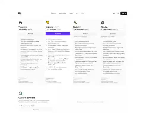 - Tinkerer – 200 credits for $1.99. This is the entry pack. Even this basic bundle includes full commercial rights and access to all core features (LLMs, image/video generators, ElevenLabs voice, etc.). It’s great if you just want to try some workflows.