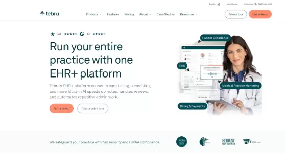 Tebra brands itself as an EHR+ that ties scheduling, billing, charting, and patient engagement under one roof - with built-in AI to speed notes and automate repetitive admin tasks. It’s modern, HIPAA-secure, and focused on small-to-mid private practices that care about growth as well as operations.