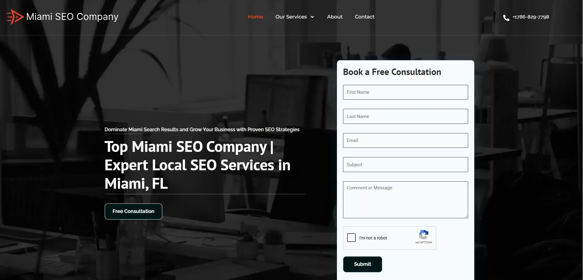The site also points to local SEO, PPC, and custom strategy work for Miami companies that need practical implementation rather than theory.