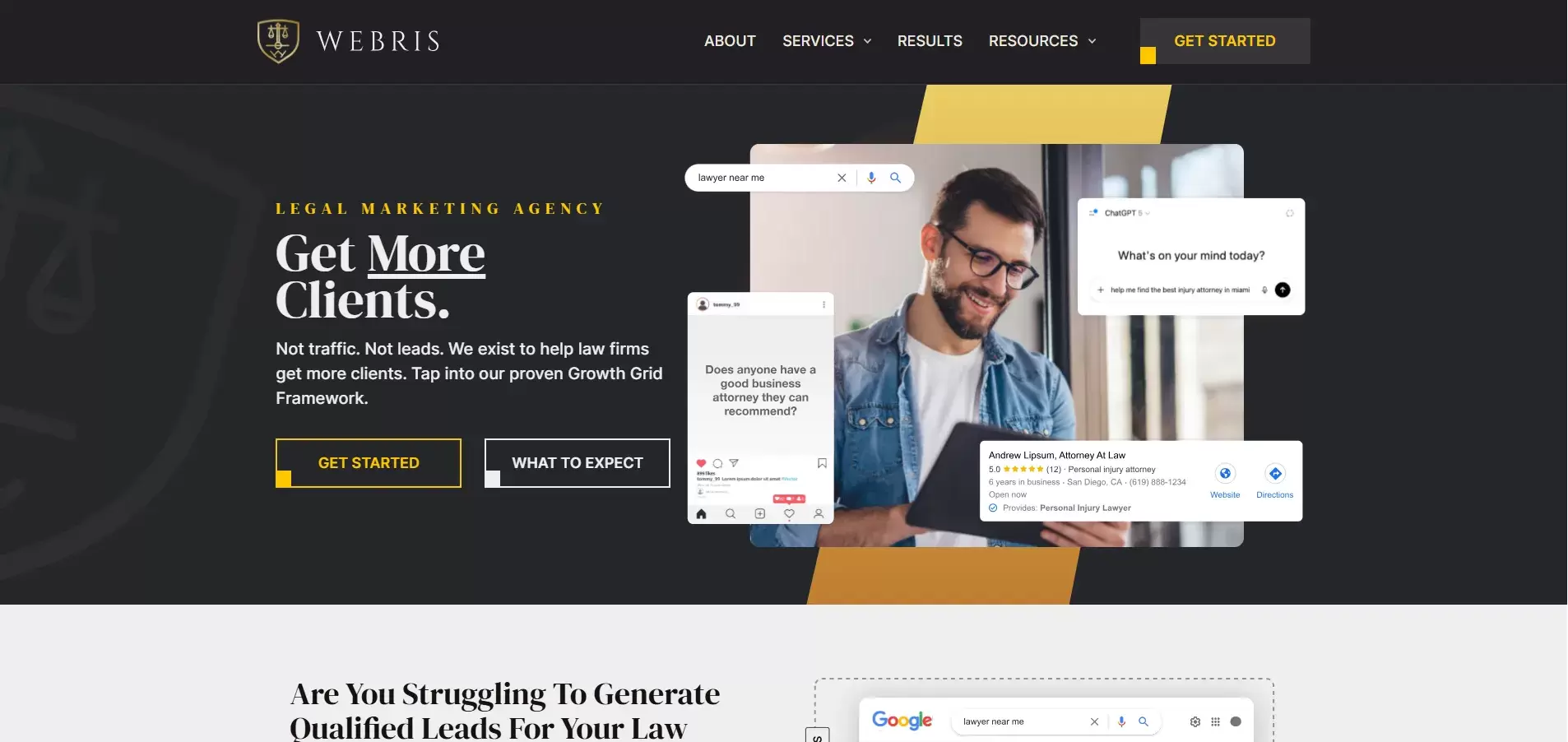 WEBRIS is a Miami-based law firm marketing agency, and that specialization matters. The company says it works only with law firms and offers SEO, GEO, local SEO, PPC, local service ads, Facebook ads, and web design. For legal brands, that kind of vertical focus is often stronger than hiring a generalist agency.