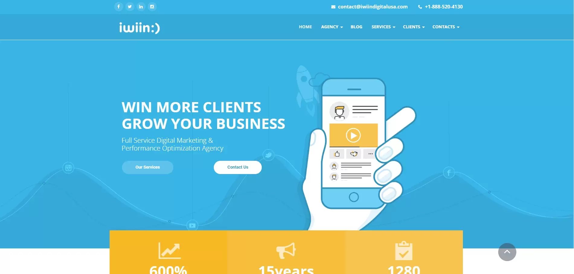 IWIIN DIGITAL is a full-service agency based in Miami with an additional office located in Sao Paulo. They provide services like Website development, content marketing, SEO, SEM, PPC, local SEO, e-mail marketing, and CRO. It even has a free SEO report that checks 100 parameters, so it provides a more diagnostic positioning than many smaller agencies.