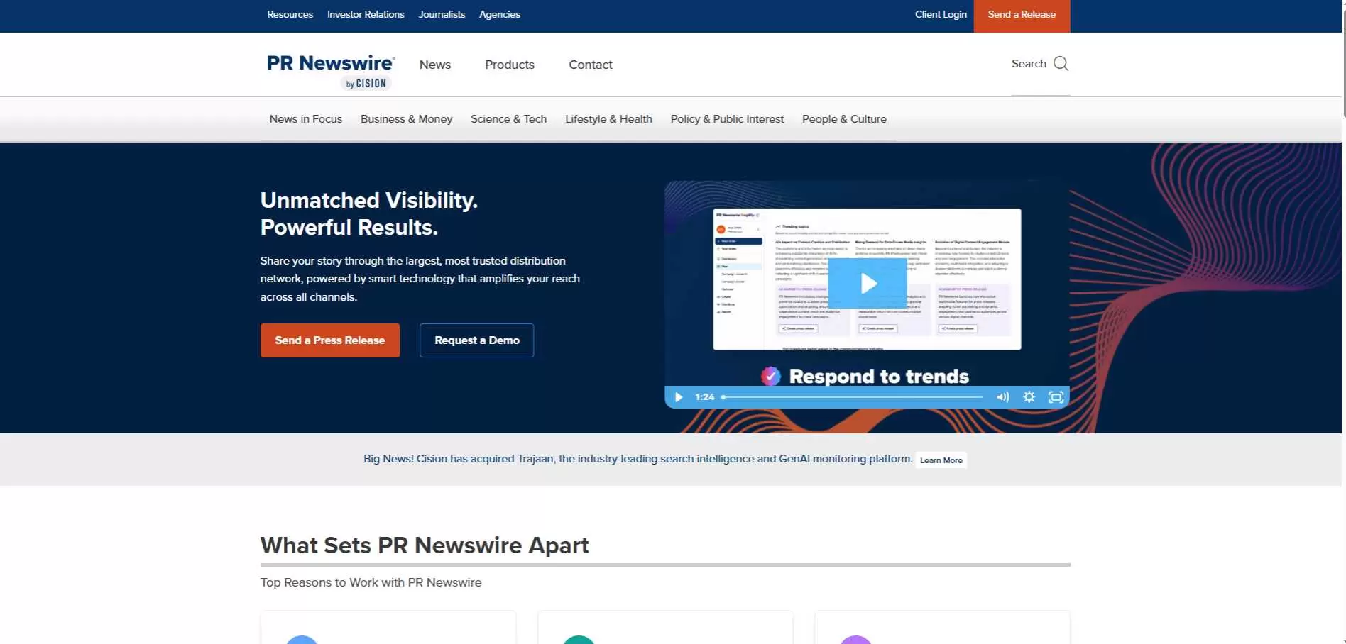 Business Wire is the premium choice for organizations that want reliable distribution, especially when accuracy and presentation matter. Its site highlights investor relations services, analytics and reporting, multimedia support, and targeted distribution lists. On the pricing page, it states that a 400-word U.S. domestic local distribution starts at $475, but also implies custom plans available. Best for big brands, public companies and teams wanting a polished high-trust platform.