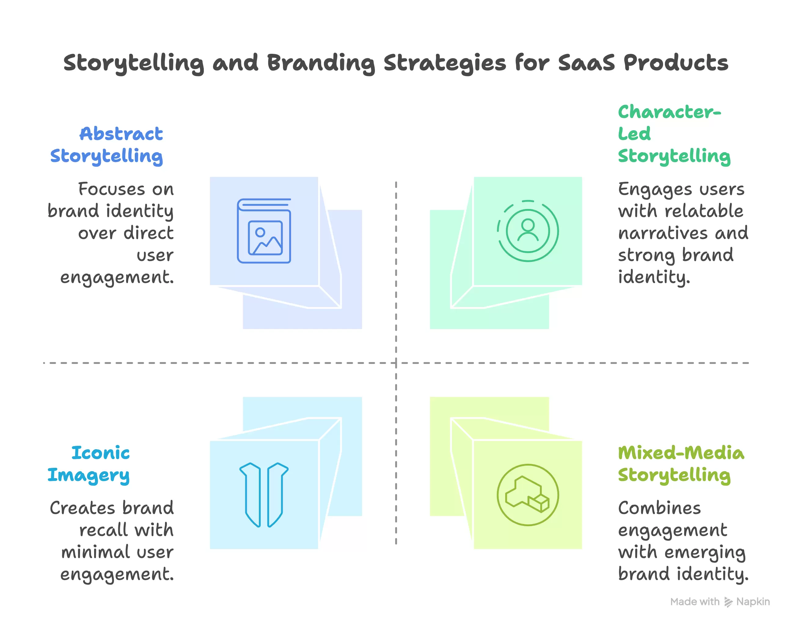 For consumer-facing SaaS, you can open up the creative palette. Characters, scenarios, emotional arcs, humor, and relatable visuals work beautifully because the audience has the mental space for it.